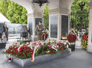 (250508) -- VARSOVIA, 8 mayo, 2025 (Xinhua) -- Una ceremonia para conmemorar el 80 aniversario del fin de la Segunda Guerra Mundial en Europa, conocido como el Día de la Victoria en Europa, se lleva a cabo en la Tumba del Soldado Desconocido, en Varsovia, Polonia, el 8 de mayo de 2025. (Xinhua/Zhang Fan) (rtg) (ra) (ce)