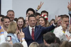 (250602) -- VARSOVIA, 2 junio, 2025 (Xinhua) -- Imagen del 1 de junio de 2025 de Rafal Trzaskowski (c), alcalde de Varsovia y candidato de la gobernante Coalición Cívica, gesticulando en un evento electoral, en Varsovia, Polonia. Karol Nawrocki, candidato independiente respaldado por el partido opositor Ley y Justicia, ganó la segunda vuelta de las elecciones presidenciales de Polonia, según el recuento final de votos publicado el lunes por la Comisión Electoral Nacional. (Xinhua/Jaap Arriens) (oa) (rtg) (ce)