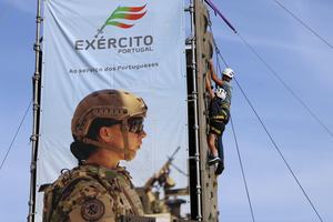 (250609) -- LAGOS, 9 junio, 2025 (Xinhua) -- Imagen del 8 de junio de 2025 de personas asistiendo a una actividad de alpinismo, en Lagos, Portugal. Portugal celebrará su desfile militar del Día Nacional el 10 de junio en la ciudad costera meridional de Lagos. El 8 de junio, las fuerzas armadas organizaron un evento de día de puertas abiertas, con puestos de exhibición e invitando al público a interactuar con los soldados y varios tipos de equipos militares. (Xinhua/Xun Wei) (oa) (rtg) (vf)