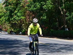 (250201) -- HAIKOU, Feb. 1, 2025 (Xinhua) -- A man rides a bike on a scenic ring road surrounding the National Park of Hainan Tropical Rainforest in south China's Hainan Province, Jan. 30, 2025. Hainan has constructed two scenic loop highways, one along the coast and the other around the mountains, making it more convenient for visitors to enjoy the island's natural beauty. (Xinhua/Pu Xiaoxu)