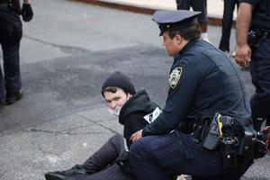 (250611) -- NUEVA YORK, 11 junio, 2025 (Xinhua) -- Imagen del 10 de junio de 2025 de oficiales de policía de Nueva York deteniendo a un manifestante contra el Servicio de Inmigración y Control de Aduanas (ICE, por sus siglas en inglés) alrededor del Tribunal de Inmigración de Federal Plaza, en el Bajo Manhattan, en la Ciudad de Nueva York, Estados Unidos. Las manifestaciones contra la represión de la inmigración de la administración Trump se han intensificado y extendido mucho más allá de Los Angeles, con miles de personas reunidas en al menos dos docenas de ciudades el martes por la noche, informaron medios estadounidenses. (Xinhua/Liu Yanan) (ra) (vf)