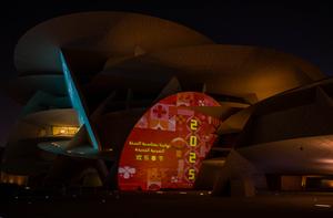 (250128) -- DOHA, 28 enero, 2025 (Xinhua) -- Imagen del 28 de enero de 2025 del Museo Nacional de Qatar iluminado en celebración del Año Nuevo chino, en Doha, Qatar. (Xinhua/Nikku) (jg) (ra) (vf)