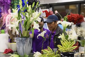(260319) -- DOHA, 19 marzo, 2026 (Xinhua) -- Imagen del 18 de marzo de 2026 de trabajadores arreglando flores en una tienda previo al Eid Al-Fitr, en Doha, Qatar. (Xinhua/Nikku) (da) (ra) (ce)