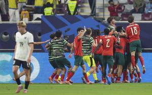 (251128) -- DOHA, 28 noviembre, 2025 (Xinhua) -- Imagen del 27 de noviembre de 2025 de jugadores de Portugal festejando después de realizar una anotación durante el partido final entre Portugal y Austria en la Copa Mundial Sub-17 de la FIFA Qatar 2025, en Doha, Qatar. Portugal ganó 1-0. (Xinhua/Nikku) (rtg) (ra) (vf)