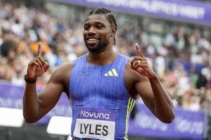 (250720) -- LONDRES, 20 julio, 2025 (Xinhua) -- Imagen del 19 de julio de 2025 de Noah Lyles, de Estados Unidos, posando para los medios de comunicación al término del evento de 100m masculinos en la Reunión de Londres de la Liga Diamante 2025, en Londres, Reino Unido. (Xinhua/Stephen Chung) (rtg) (ah)