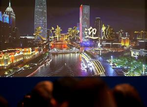 (250424) -- LONDRES, 24 abril, 2025 (Xinhua) -- Personas observan un video promocional de la ciudad portuaria de Tianjin, en el norte de China, en un evento de promoción de inversión y negocios para Tianjin, celebrado en Londres, Reino Unido, el 24 de abril de 2025. El jueves se celebró en el centro de Londres un evento de promoción de inversión y negocios para la ciudad portuaria de Tianjin, en el norte de China, con una entusiasta participación de actores tanto chinos como británicos. (Xinhua/Li Ying) (da) (ra) (vf)