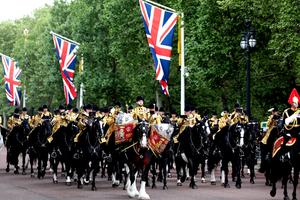 (250506) -- LONDRES, 6 mayo, 2025 (Xinhua) -- Imagen del 5 de mayo de 2025 de una procesión militar llevándose a cabo, en Londres, Reino Unido. Reino Unido realizó procesiones militares y un sobrevuelo de la Real Fuerza Aérea el lunes para conmemorar el 80 aniversario del Día de la Victoria en Europa. (Xinhua/Li Ying) (jg) (ra) (vf)