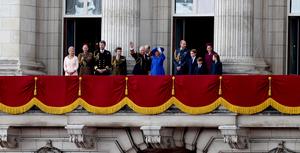 (250506) -- LONDRES, 6 mayo, 2025 (Xinhua) -- Imagen del 5 de mayo de 2025 del rey Carlos III y la reina Camila de Reino Unido saludando en el balcón del Palacio de Buckingham, en Londres, Reino Unido. Reino Unido realizó procesiones militares y un sobrevuelo de la Real Fuerza Aérea el lunes para conmemorar el 80 aniversario del Día de la Victoria en Europa. (Xinhua/Li Ying) (jg) (ra) (vf)