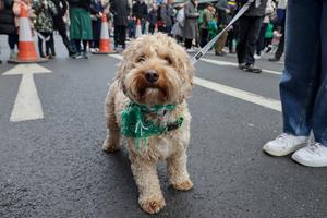 (250317) -- LONDRES, 17 marzo, 2025 (Xinhua) -- Imagen del 16 de marzo de 2025 de un perro asistiendo al Desfile del Día de San Patricio, en Londres, Reino Unido. El Día de San Patricio es ampliamente celebrado por las comunidades irlandesas de todo el mundo. (Xinhua) (ah) (rtg) (ce)