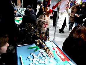 (250202) -- LONDRES, 2 febrero, 2025 (Xinhua) -- Imagen del 1 de febrero de 2025 de persona disfrazada de Rey Mono jugando Mahjong durante una celebración del Año Nuevo chino en el mercado de Camden, en Londres, Reino Unido. (Xinhua/Li Ying) (oa) (ah)