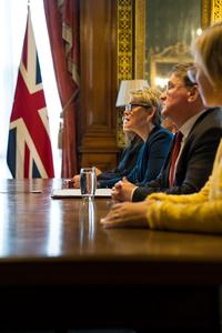 (260403) -- LONDRES, 3 abril, 2026 (Xinhua) -- Imagen del 2 de abril del 2026 de la secretaria de Relaciones Exteriores británica, Yvette Cooper (3-d), sosteniendo una reunión virtual sobre el estrecho de Ormuz, en Londres, Reino Unido. Durante una reunión virtual organizada por Reino Unido sobre el estrecho de Ormuz se exhortó el jueves a la reapertura "inmediata e incondicional del estrecho", lo que apunta a una mayor presión diplomática y sanciones coordinadas contra Irán. (Xinhua/Michael Peat/Ministerio de Relaciones Exteriores y de la Mancomunidad de Naciones de Reino Unido) (oa) (ra) (vf) ***SOLO USO EDITORIAL*** ***LA IMAGEN NO PUEDE UTILIZARSE CON FINES PUBLICITARIOS O COMERCIALES. LA IMAGEN NO PUEDE SER MODIFICADA DE NINGUN MODO***