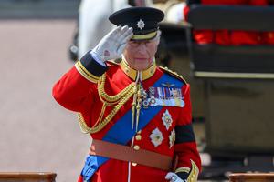 (250615) -- LONDRES, 15 junio, 2025 (Xinhua) -- Imagen del 14 de junio de 2025 del rey británico, Carlos III, asistiendo al desfile Trooping the Colour en su honor en su cumpleaños oficial, en Londres, Reino Unido. (Xinhua/Ray Tang) (oa) (da)