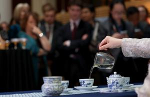 (260425) -- LONDRES, 25 abril, 2026 (Xinhua) -- Imagen del 24 de abril de 2026 de personas observando una presentación del tradicional arte del té chino durante un evento de promoción de la ciudad de Shanghai, en Londres, Reino Unido. Un evento titulado "Salón del Té de la Asombrosa Ciudad de Shanghai" se llevó a cabo el viernes en la Biblioteca Británica en Londres para promocionar la imagen de Shanghai, en el este de China. (Xinhua/Li Ying) (ra) (da)