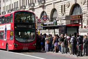 (250908) -- LONDRES, 8 septiembre, 2025 (Xinhua) -- Pasajeros se trasladan a otros modos de transporte en una parada de autobús cerca de la estación Baker Street del Metro de Londres, en Londres, Reino Unido, el 8 de septiembre de 2025. Londres enfrenta caos en el transporte debido a una serie de huelgas convocadas por los miembros del sindicato Ferroviario, Marítimo y de Transporte. (Xinhua/Wu Lu) (rtg) (ah) (ce)