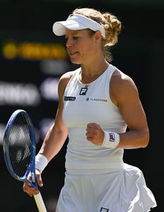 (250708) -- LONDRES, 8 julio, 2025 (Xinhua) -- Laura Siegemund reacciona durante el partido de cuartos de final de individuales femeninos entre Aryna Sabalenka, de Bielorrusia, y Laura Siegemund, de Alemania, en el Campeonato de Tenis de Wimbledon, en Londres, Reino Unido, el 8 de julio de 2025. (Xinhua/Li Ying) (oa) (ah) (ce)