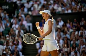 (250711) -- LONDRES, 11 julio, 2025 (Xinhua) -- Imagen del 10 de julio de 2025 de Iga Swiatek festejando al término del partido de semifinal de individuales femeninos entre Iga Swiatek, de Polonia, y Belinda Bencic, de Suiza, en el Campeonato de Tenis de Wimbledon, en Londres, Reino Unido. (Xinhua/Li Ying) (oa) (ra) (vf)