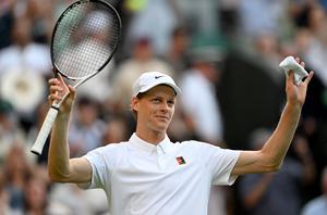 (250704) -- LONDRES, 4 julio, 2025 (Xinhua) -- Imagen del 3 de julio de 2025 de Jannik Sinner festejando al término del partido de segunda ronda de individuales masculinos entre Jannik Sinner, de Italia, y Aleksandar Vukic, de Australia, en el Campeonato de Tenis de Wimbledon, en Londres, Reino Unido. (Xinhua/Li Ying) (rtg) (ra) (vf)