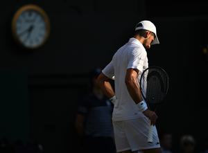 (250712) -- LONDRES, 12 julio, 2025 (Xinhua) -- Imagen del 11 de julio de 2025 de Novak Djokovic reaccionando durante el partido de semifinal de individuales masculinos entre Jannik Sinner, de Italia, y Novak Djokovic, de Serbia, en el Campeonato de Tenis de Wimbledon, en Londres, Reino Unido. (Xinhua/Zhao Dingzhe) (rtg) (da)