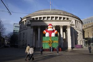 (251127) -- MANCHESTER, 27 noviembre, 2025 (Xinhua) -- Imagen del 26 de noviembre de 2025 de personas caminando frente a decoraciones navideñas, en Manchester, Reino Unido. La ministra de Hacienda británica, Rachel Reeves, presentó el miércoles el Presupuesto 2025, prometiendo que el Gobierno no regresará al país a la austeridad ni permitirá que el gasto público y el endeudamiento se disparen, a la vez que se comprometió a aliviar la presión sobre el costo de la vida. Según un comunicado publicado en el sitio web del Gobierno británico, Reeves presentó una amplia gama de propuestas sobre gasto público e impuestos destinadas a reducir los préstamos y la deuda, salvaguardando los servicios públicos esenciales, estimulando el crecimiento económico, mejorando la equidad fiscal e impulsado las reformas del bienestar. (Xinhua/Jon Super) (da) (ra) (vf)