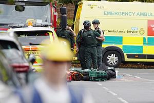 (251002) -- MANCHESTER, 2 octubre, 2025 (Xinhua) -- Trabajadores de emergencia son vistos en la escena en la sinagoga Heaton Park Hebrew Congregation, en Manchester, Reino Unido, el 2 de octubre de 2025. La Policía confirmó el jueves la muerte de dos personas en un grave ataque con arma blanca ocurrido frente a la sinagoga Heaton Park Hebrew Congregation, situada en Middleton Road, Crumpsall, en la ciudad británica de Manchester. (Xinhua) (rtg) (ra) (ce)