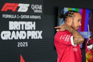 (250704) — SILVERSTONE, 4 julio, 2025 (Xinhua) — Imagen del 3 de julio de 2025 del piloto británico de la escudería Ferrari, Lewis Hamilton, siendo entrevistado durante el día de prensa previo a la carrera del Gran Premio de Reino Unido de Fórmula Uno 2025, en Silverstone, Reino Unido. (Xinhua/Wu Lu) (rtg) (ra) (vf)