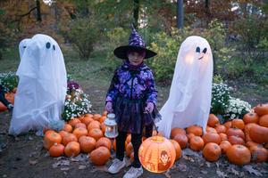 (251031) — PRAGA, 31 octubre, 2025 (Xinhua) — Una niña posa para una fotografía frente a una decoración de Halloween en un jardín botánico, en Praga, República Checa, el 31 de octubre de 2025. Personas disfrutaron de diversión y juegos en el jardín botánico durante las celebraciones del Festival de Halloween. (Xinhua/Dana Kesnerova) (oa) (ra) (ce)
