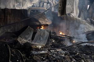 (250328) -- GYEONGSANG, 28 marzo, 2025 (Xinhua) -- Imagen del 27 de marzo de 2025 de un edificio destruido por los incendios forestales en el Complejo Industrial Agrícola de Namhu, en la ciudad de Andong, en la provincia de Gyeongsang del Norte, República de Corea. El número de muertos se elevó a 28, y otras 37 personas resultaron heridas, en los peores incendios forestales de la historia de República de Corea, según mostró el viernes una recopilación del gobierno. (Xinhua/Jun Hyosang) (oa) (ra) (vf)
