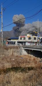 (250306) -- POCHEON, 6 marzo, 2025 (Xinhua) -- Humo emana después de que un avión de combate lanzara por accidente proyectiles sobre una zona civil de la República de Corea durante unos simulacros con fuego real, en Pocheon, la República de Corea, el 6 de marzo de 2025. Siete personas resultaron heridas el jueves después de que un avión de combate lanzó por accidente proyectiles sobre una zona civil de República de Corea durante unos simulacros con fuego real, informó la Fuerza Aérea surcoreana. El avión de combate KF-16 lanzó de forma anormal ocho proyectiles MK-82 fuera de un campo de tiro con fuego real en la ciudad fronteriza intercoreana de Pocheon, a unos 40 km al norte de la capital, Seúl, alrededor de las 10:00 a.m. hora local. (Xinhua/Yao Qilin) (rtg) (ra) (vf)