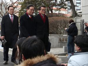 (250226) -- SEUL, 26 febrero, 2025 (Xinhua) -- Imagen del 25 de febrero de 2025 del equipo de abogados de Yoon Suk-yeol llegando al Tribunal Constitucional, en Seúl, República de Corea. El Tribunal Constitucional de la República de Corea celebró el martes la undécima y última audiencia del juicio político al presidente Yoon Suk-yeol, quien estuvo presente para dar su declaración final. (Xinhua/Yao Qilin) (ah) (ra) (vf)