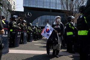 (250404) -- SEUL, 4 abril, 2025 (Xinhua) -- Una simpatizante de Yoon Suk-yeol es vista cerca de la residencia presidencial, en Seúl, República de Corea, el 4 de abril de 2025. El Tribunal Constitucional de la República de Corea confirmó una moción de la Asamblea Nacional para destituir al presidente Yoon Suk-yeol por la imposición de la ley marcial en diciembre pasado, según la transmisión televisiva en vivo del proceso. El presidente interino del tribunal, Moon Hyung-bae, leyó el fallo sobre el juicio por destitución de Yoon, afirmando que se trató de una decisión unánime de ocho jueces. (Xinhua/Jun Hyosang) (rtg) (ra) (vf)