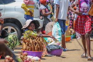 (250225) -- BUKAVU, 25 febrero, 2025 (Xinhua) -- Imagen del 24 de febrero de 2025 de una vendedora vista en un mercado callejero, en Bukavu, en la provincia de Kivu del Sur, en la República Democrática del Congo (RDC). (Xinhua/Zanem Nety Zaidi) (oa) (ah) (ce)