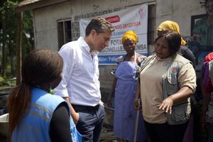 (250627) -- GOMA, 27 junio, 2025 (Xinhua) -- Imagen del 26 de junio de 2025 del secretario general adjunto de las Naciones Unidas para Asuntos Humanitarios, Tom Fletcher (2-i), hablando con una trabajadora humanitaria, en Goma, capital de la provincia de Kivu del Norte, en el este de la República Democrática del Congo. La ONU advirtió que las necesidades humanitarias siguen siendo críticas en el este de la República Democrática del Congo, agravadas por un grave déficit de financiación. Fletcher reafirmó el compromiso de la ONU de apoyar los esfuerzos de socorro en curso sobre el terreno. (Xinhua/Zanem Nety Zaidi) (jg) (da) (vf)