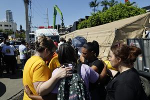 (250409) -- SANTO DOMINGO, 9 abril, 2025 (Xinhua) -- Personas reaccionan en el lugar donde se desplomó el techo de una discoteca, en Santo Domingo, República Dominicana, el 9 de abril de 2025. Se elevó a 124 el número de personas que perdieron la vida a consecuencia de la caída del techo de una discoteca registrada la madrugada del martes en la ciudad de Santo Domingo, capital de República Dominicana, confirmaron el miércoles las autoridades locales. (Xinhua/Str) (jg) (da) (ce)