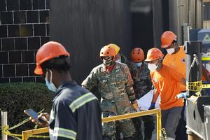 (250409) -- SANTO DOMINGO, 9 abril, 2025 (Xinhua) -- Rescatistas trasladan el cuerpo de una víctima en el lugar donde se desplomó el techo de una discoteca, en Santo Domingo, República Dominicana, el 9 de abril de 2025. Se elevó a 124 el número de personas que perdieron la vida a consecuencia de la caída del techo de una discoteca registrada la madrugada del martes en la ciudad de Santo Domingo, capital de República Dominicana, confirmaron el miércoles las autoridades locales. (Xinhua/Str) (jg) (da) (ce)