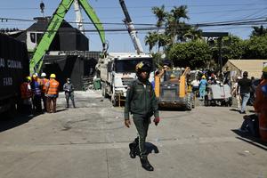 (250409) -- SANTO DOMINGO, 9 abril, 2025 (Xinhua) -- Rescatistas laboran en el lugar donde se desplomó el techo de una discoteca, en Santo Domingo, República Dominicana, el 9 de abril de 2025. Se elevó a 124 el número de personas que perdieron la vida a consecuencia de la caída del techo de una discoteca registrada la madrugada del martes en la ciudad de Santo Domingo, capital de República Dominicana, confirmaron el miércoles las autoridades locales. (Xinhua/Str) (jg) (da) (ce)