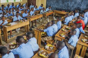 (260122) -- KIGALI, 22 enero, 2026 (Xinhua) -- Imagen del 20 de enero de 2026 de niños almorzando en su salón de clases en una escuela, en el distrito de Bugesera, en la provincia Oriental, en Ruanda. Bajo un programa de apoyo infantil lanzado en 2023, los niños aquí reciben alimentos en escuelas para atender sus problemas de nutrición. (Xinhua/Cyril Ndegeya) (rtg) (ra) (vf)