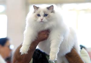 (250512) -- BUCAREST, 12 mayo, 2025 (Xinhua) -- Imagen del 11 de mayo de 2025 de un gato Ragdoll calificado durante la Exposición Internacional Felina de Primavera Sofisticat en el Palace Hall, en Bucarest, Rumanía. Alrededor de 180 gatos de 40 razas participaron en el concurso de belleza felina de dos días. (Xinhua/Cristian Cristel) (oa) (ah) (vf)