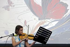 (250601) — BUCAREST, 1 junio, 2025 (Xinhua) — Imagen del 31 de mayo de 2025 de una concursante realizando una presentación durante el 18° Concurso de Dominio del Idioma Chino «Puente Chino» para Estudiantes Extranjeros de Secundaria, en Bucarest, Rumania. (Xinhua/Cristian Cristel) (oa) (rtg)