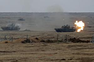 (250220) -- GALATI, 20 febrero, 2025 (Xinhua) -- Imagen del 19 de febrero de 2025 de tanques rumanos disparando durante el ejercicio Steadfast Dart 2025 de la OTAN en un campo de entrenamiento, en Smardan, Rumania. (Xinhua/Cristian Cristel) (da) (ra) (vf)