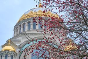 (251201) -- SAN PETERSBURGO, 1 diciembre, 2025 (Xinhua) -- Imagen del 30 de noviembre de 2025 de la Catedral Naval, un monumento emblemático, en Kronstadt, Rusia. Kronstadt está ubicada en el Golfo de Finlandia, a 30 kilómetros al oeste de San Petersburgo, y es una importante base naval de Rusia. (Xinhua/Guo Feizhou) (oa) (ah) (vf)