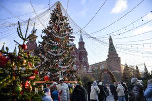 (251224) -- MOSCU, 24 diciembre, 2025 (Xinhua) -- Imagen del 23 de diciembre de 2025 de personas caminando junto a decoraciones de Año Nuevo, en Moscú, Rusia. (Xinhua/Alexander Zemlianichenko Jr) (jg) (da) (vf)