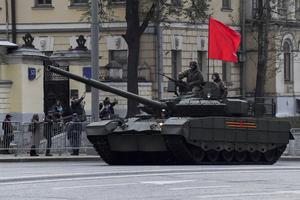 (250430) -- MOSCU, 30 abril, 2025 (Xinhua) -- Imagen del 29 de abril de 2025 de un tanque circulando a lo largo de una calle durante un ensayo del desfile militar por el Día de la Victoria, en Moscú, Rusia. (Xinhua/Alexander Zemlianichenko Jr) (ah) (ra) (vf)