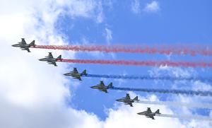 (250509) -- MOSCU, 9 mayo, 2025 (Xinhua) -- Aeronaves vuelan en formación durante un gran desfile para conmemorar el 80° aniversario de la victoria en la Gran Guerra Patriótica de la Unión Soviética, en Moscú, Rusia, el 9 de mayo de 2025. (Xinhua/Zhang Ling) (rtg) (ra) (vf)