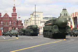 (250509) -- MOSCU, 9 mayo, 2025 (Xinhua) -- Sistemas de misiles balísticos intercontinentales son vistos durante un gran desfile para conmemorar el 80º aniversario de la victoria en la Gran Guerra Patriótica de la Unión Soviética, en Moscú, Rusia, el 9 de mayo de 2025. (Xinhua/Bai Xueqi) (oa) (ra) (vf)
