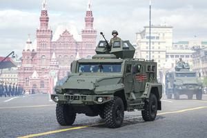(250509) -- MOSCU, 9 mayo, 2025 (Xinhua) -- Vehículos blindados circulan durante un gran desfile para conmemorar el 80º aniversario de la victoria en la Gran Guerra Patriótica de la Unión Soviética, en Moscú, Rusia, el 9 de mayo de 2025. (Xinhua/Lai Xiangdong) (oa) (ra) (vf)