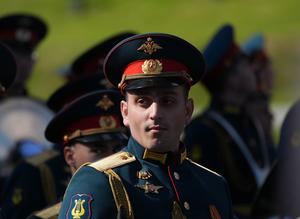 (250509) -- MOSCU, 9 mayo, 2025 (Xinhua) -- Una banda militar se prepara para asistir a un gran desfile para conmemorar el 80º aniversario de la victoria en la Gran Guerra Patriótica de la Unión Soviética, en Moscú, Rusia, el 9 de mayo de 2025. (Xinhua/Lai Xiangdong) (oa) (ra) (vf)