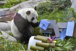 (250730) -- MOSCU, 30 julio, 2025 (Xinhua) -- La panda gigante Dingding observa sus regalos de cumpleaños en el Zoológico de Moscú, en Moscú, Rusia, el 30 de julio de 2025. El Zoológico de Moscú celebró el miércoles un evento para festejar el octavo cumpleaños de la panda gigante Dingding. (Xinhua/Alexander Zemlianichenko Jr) (ah) (ra) (ce)