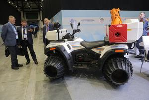 (251209) -- SAN PETERSBURGO, 9 diciembre, 2025 (Xinhua) -- Una moto de nieve es exhibida en una exposición durante el 15 Foro Internacional Artico: Hoy y el Futuro, en San Petersburgo, Rusia, el 9 de diciembre de 2025. (Xinhua/Irina Motina) (oa) (ah) (vf)