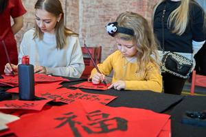 (250129) -- VLADIVOSTOK, 29 enero, 2025 (Xinhua) -- Participantes practican caligrafía china durante un evento en celebración del Año Nuevo chino en el Instituto Confucio de la Universidad Federal del Lejano Oriente de Rusia, en Vladivostok, Rusia, el 29 de enero de 2025. El Instituto Confucio de la Universidad Federal del Lejano Oriente de Rusia organizó un evento de experiencia cultural de Año Nuevo chino, que atrajo a muchos participantes. (Xinhua/Guo Feizhou) (ah) (ra) (vf)