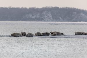 (260107) -- VLADIVOSTOK, 7 enero, 2026 (Xinhua) -- Focas son vistas sobre el hielo, en Vladivostok, una ciudad en el Lejano Oriente de Rusia, el 7 de enero de 2026. (Xinhua/Andrey Matveenko) (jg) (ra) (vf)